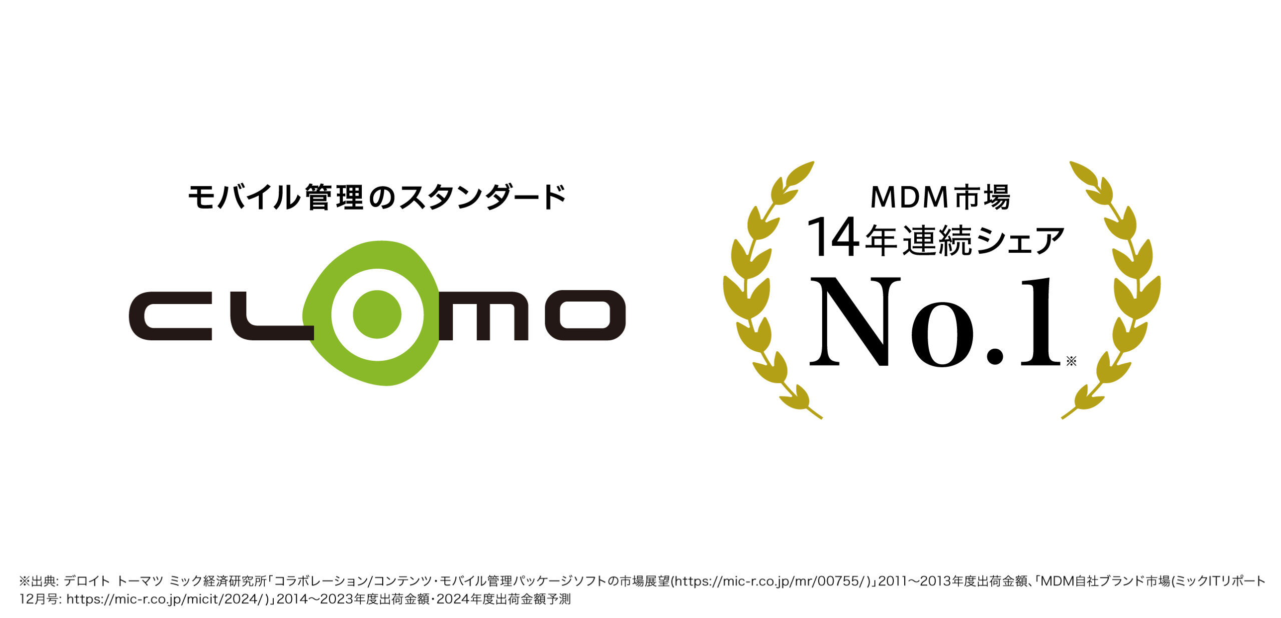 エンタープライズモバイル管理ソフトウェアを提供する、株式会社アイキューブドシステムズ(本社: 福岡県福岡市、代表取締役執行役員社長 CEO: 佐々木 勉、以下、アイキューブドシステムズ)は、モバイル端末管理ソフトウェアサービス「CLOMO」が日本国内のMDM(*1)市場(自社ブランド)シェアにおいて、2011年度から2024年度の14年連続でシェアNo.1(*2)を獲得したことをお知らせいたします。